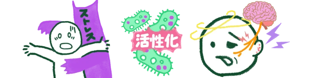 水ぼうそうが治った後もウイルスは体から消え去るわけではなく、顔面神経の付け根にある「膝神経節(しつしんけいせつ)」という神経の司令塔のような場所に、何十年も静かに潜伏しています。そして、過労や強いストレスなどで体の免疫力が低下した時、この眠っていたウイルスが再び暴れ出します(再活性化)。
