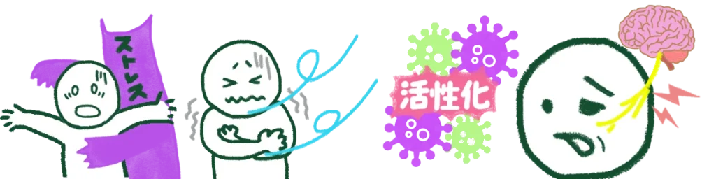多くの方が子供の頃に口唇ヘルペスの原因となるこのウイルスに感染し、その後ウイルスは顔面神経の付け根にある「膝神経節(しつしんけいせつ)」という場所に静かに潜伏します。そして、過労やストレス、寒冷な場所への暴露などを引き金に、免疫力が低下したタイミングでウイルスが再び活動を始めてしまうのです。